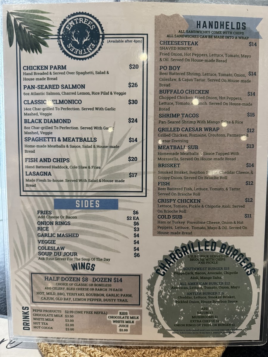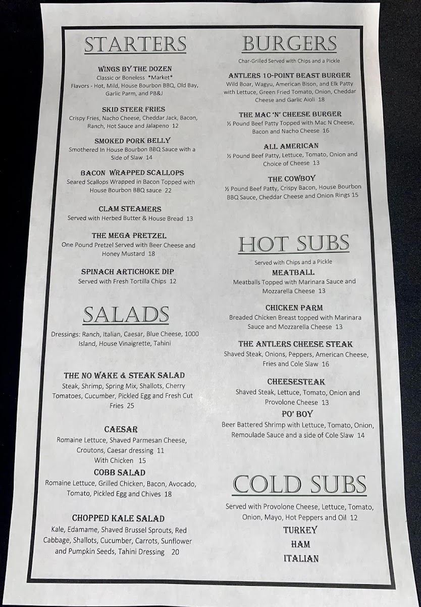 The menu is not just about food - it’s about an experience. Picture yourself enjoying the view as you dive into a perfectly cooked meal, surrounded by friendly service that makes you feel right at home. You can savor everything from their signature dishes to seasonal specials, making each visit a chance to try something new. So, whether you're here for a special occasion or a casual meal, Antlers On The Water guarantees a dining experience you won’t soon forget.